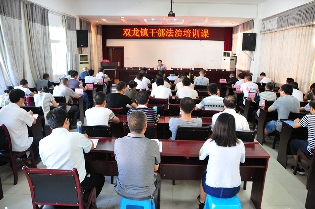 图为普法宣讲队队长陈昌元为双龙镇党政干部上法治课