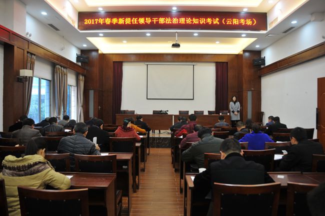 3月25日,云阳县新提任的63名县管领导干部参加了2017年春季重庆市新提任领导干部法治理论知识考试。此次考试考场采用标准化考场考试。上午8点40分,63名参考领导准时进入考室,考场纪律严明,考试秩序井然。